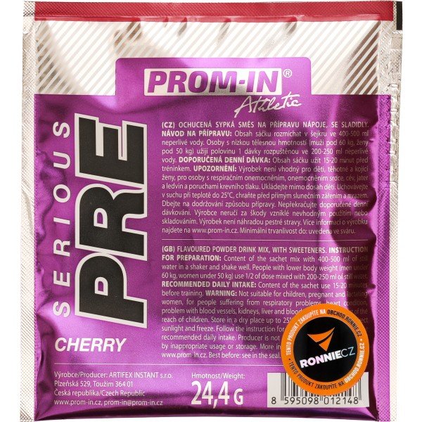 - 24,4 g (8 zarovnaných odměrek) Serious PRE rozmíchejte v šejkru ve 400 – 500 ml neperlivé vody