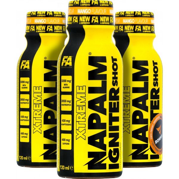 Legendární předtréninková formule je zpět v nové verzi roku 2022. FA Xtreme Napalm Igniter Shot byl obohacen o řadu cenných složek (např. GABA, výtažky z rostlinných adaptogenů, vitamíny skupiny B, L-theanin), které poskytují další podporu během intenzivního tréninku. Díky praktické formě ampulky se přípravek snadno a rychle používá a malá velikost balení nečiní žádné problémy při jeho přenášení na trénink. Optimálně zvolené poměry složek zaručují bezpečný a pevný účinek - výrobek se doporučuje amatérům i profesionálům, kteří hledají nekompromisní řešení.
