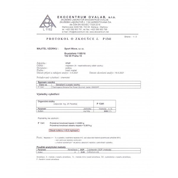 Doplněk stravy. Obsahuje vysokou dávku kofeinu (200 mg ve 4 kapslích). Osoby s onemocněním srdce, ledvin, štítné žlázy a s hypertenzí by se měly před začátkem užívání poradit s lékařem. Nepřekračujte doporučené denní dávkování. Výrobek není náhradou pestré stravy. Nevhodné pro děti, těhotné a kojící ženy. Uchovávejte mimo dosah dětí. Skladujte a uchovávejte v suchu, chraňte před teplem, mrazem a přímým slunečním zářením. Po otevření vždy pečlivě uzavírejte a spotřebujte do 6 měsíců.