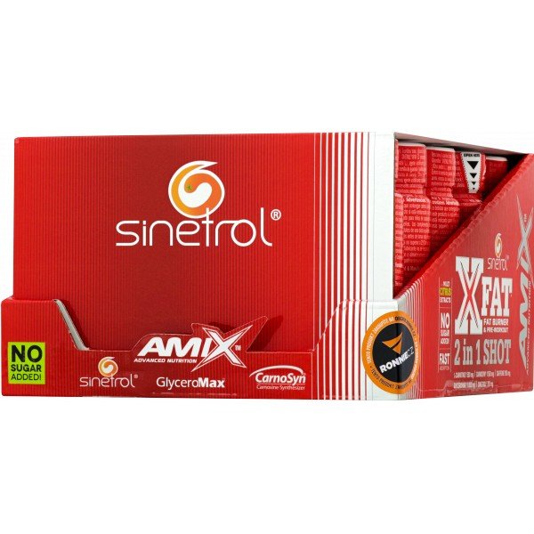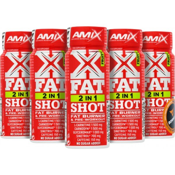 XFat 2 in1 Shot je vynikající spalovač tuku a předtréninkový doplněk stravy, který obsahuje glycerol GlyceroMax, L-karnitin, CarnoSyn beta alanin, kofein a Sinetrol - pomerančové extrakty, grepový extrakt a extrakt z guarany. Bez přidaného cukru, rychlá absorpce.