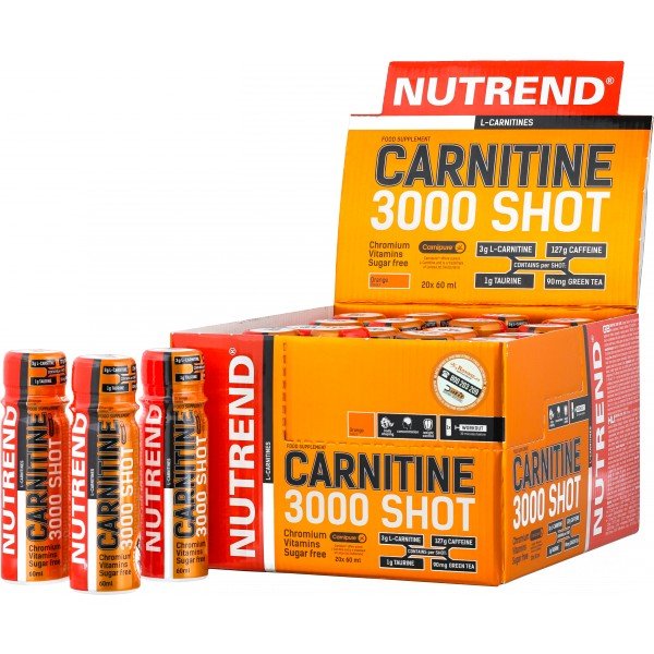Carnitine 3000 Shot je doplněk stravy se sladidly - obsahuje kofein (127 mg / 60 ml). Carnitine 3000 Shot je určen pro všechny sportovce, kteří chtějí podpořit využívání mastných kyselin jako zdroje energie při svalové práci.