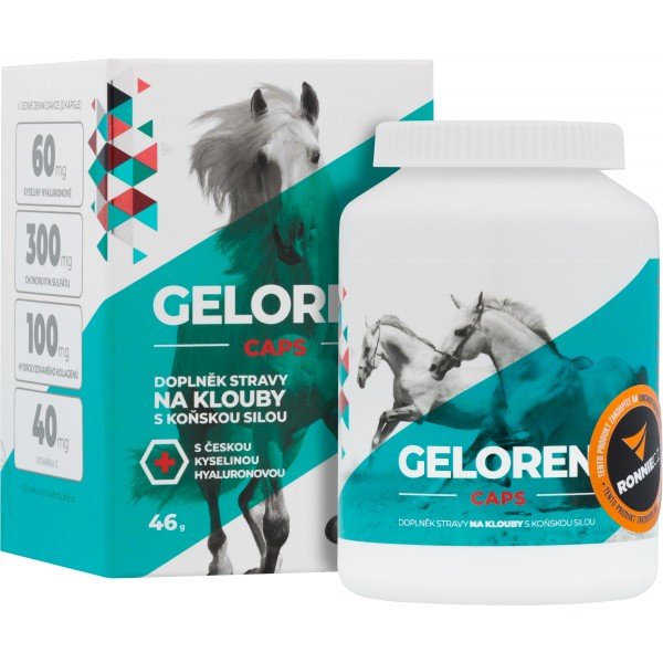 Kloubní výživu Geloren Caps vyvinuli čeští vědci speciálně pro lidi, kteří dbají na zdravý životní styl a není jim lhostejné, jaké potraviny konzumují. Kapsle neobsahují konzervanty ani plnidla a jsou bez cukru. Geloren Caps je doplněk stravy pro lidi založený na receptuře velmi oblíbené a účinné koňské kloubní výživy Geloren HA. Obsahuje vysoké množství kyseliny hyaluronové a 3 další aktivní látky na podporu pohybového aparátu (chondroitin sulfát, hydrolyzovaný kolagen a vitamín C). Snadné dávkování v podobě kapslí ve tvaru válcových tablet.