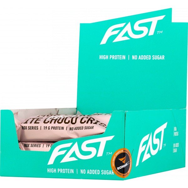 Proteinová tyčinka FAST Rox je lahodná vícevrstvá tyčinka s vysokým obsahem bílkovin bez přidaného cukru. Bílkoviny podporují růst a udržení svalové hmoty. Tyčinky jsou připravené k okamžitému použití, stačí rozbalit a sníst - pohotová svačina jak na cesty, tak ke kávě. Populární finská řada proteinových tyčinek, všechny příchutě jsou v čokoládě - mléčné, bílé či tmavé (choco crisp, white choco crisp, dark choco crisp).