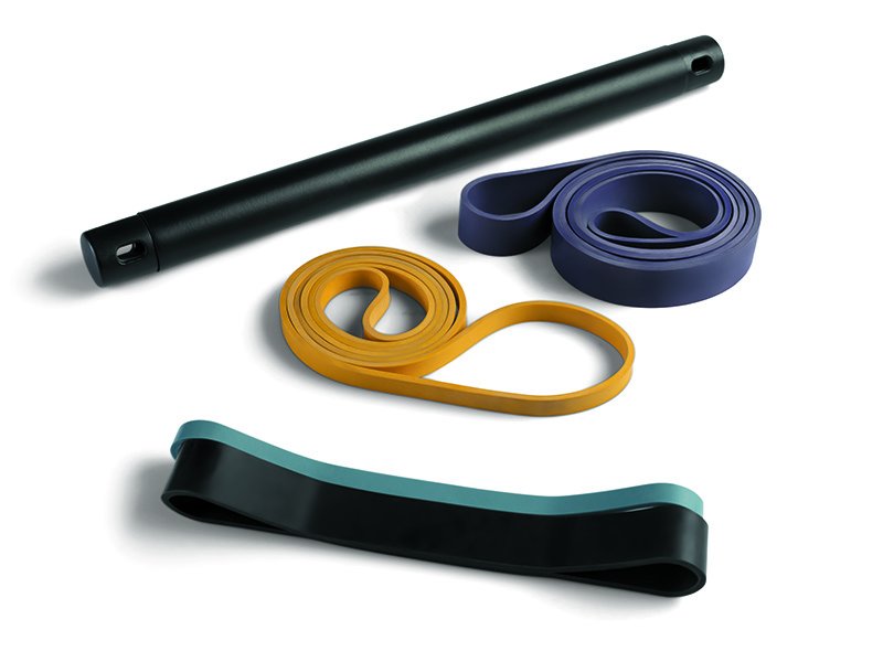 - 3 posilovací odporové gumy (9 kg, 13 kg, 22 kg).