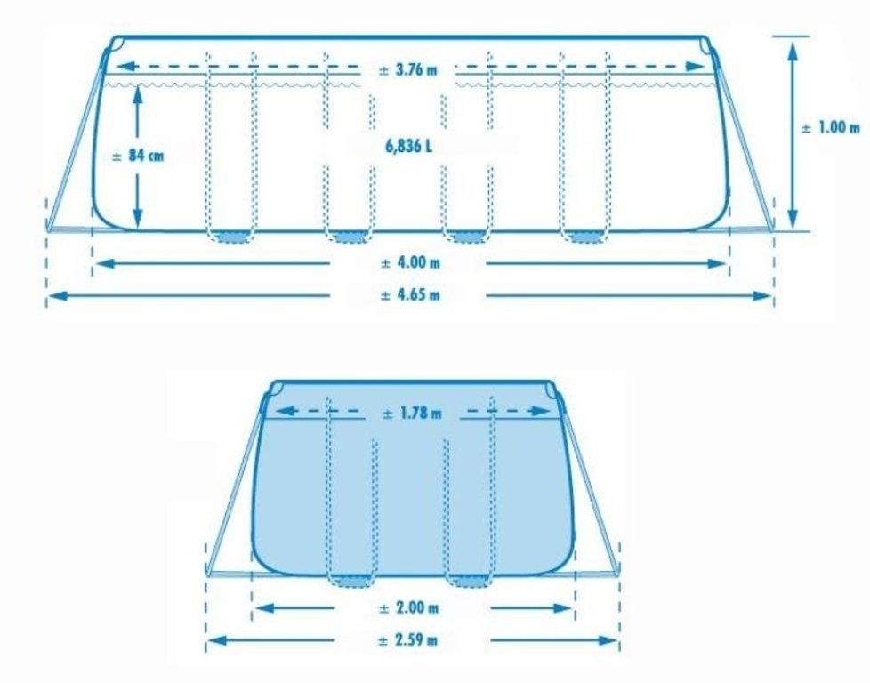 Rozměry včetně vzpěr: 4,65 x 2,59 m