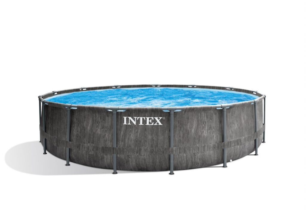 Bazén má zpevněné boční stěny 122 cm s trojnásobnou tloušťkou – 3 vrstvy materiálu pro extra pevnost a trvanlivost. Výpustní ventil je možno napojit na zahradní hadici a vodu vypustit dále od bazénu či domu. Objem (80% výšky stěny bazénu) je 16 800 litrů.
