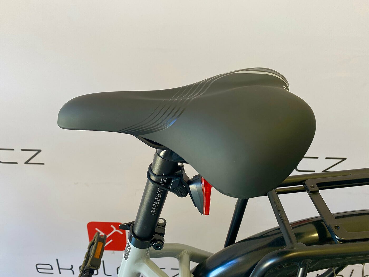 Přední vidlice Zoom se single-shock odpružením (30mm), gelové sedlo Selle Royal s možností instalace doplňků z SR Integrated Clip System. Přední světlo napájené z hlavní baterie s výkonem 6000 Lm, zadní světlo bateriové. Kvalitní pedály (platformy) značky Wellgo XL s proti-skluzovou gumovou vrstvou. Přední i zadní dlouhé hliníkové blatníky s gumovým flipem.