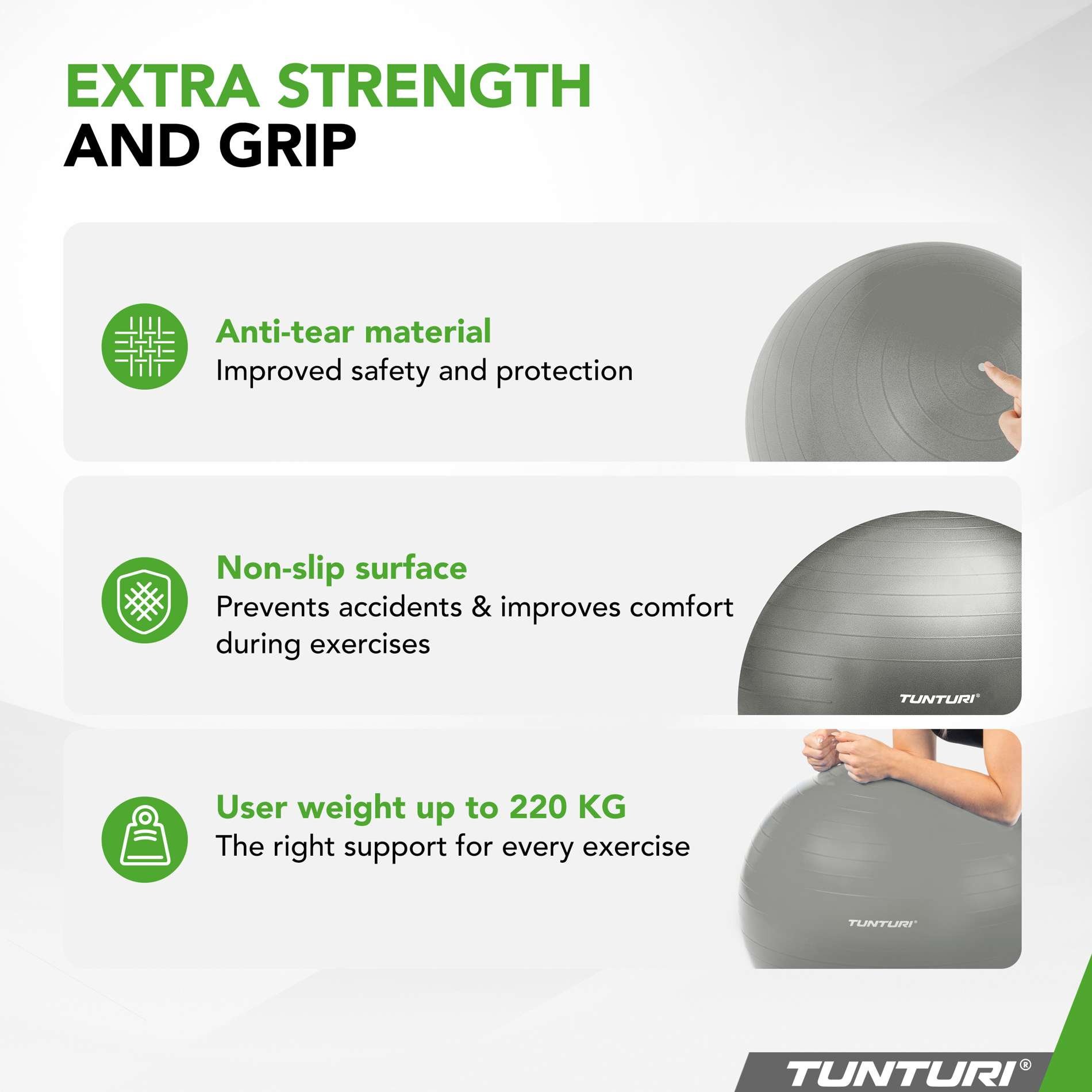 Hledáte cvičební míč, který nejenže posune vaše cvičení na vyšší úroveň, ale je také dostatečně univerzální pro jógu, strečink, a dokonce i pro pohodlné sezení u pracovního stolu? Cvičební míč Tunturi Anti Burst je navržen pro optimální podporu s nosností až 220 kg, což zajišťuje odolnost a stabilitu při každém pohybu.