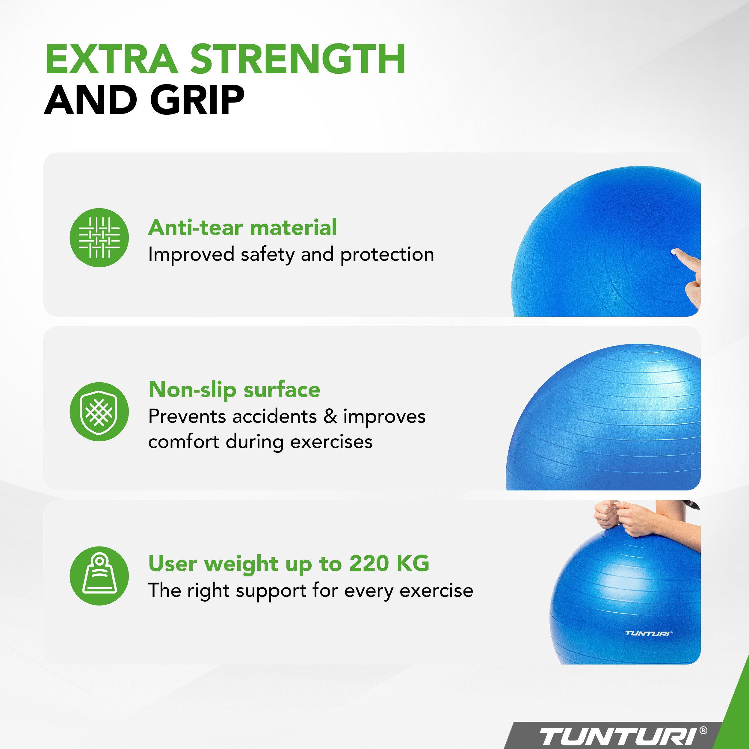 Vychutnejte si dokonalou rovnováhu mezi stabilitou a pružností, zatímco funkce anti burst vám poskytne bezpečného a spolehlivého tréninkového partnera. Protiskluzová úprava zajišťuje pevný úchop, díky němuž můžete s jistotou provádět jakýkoli pohyb.