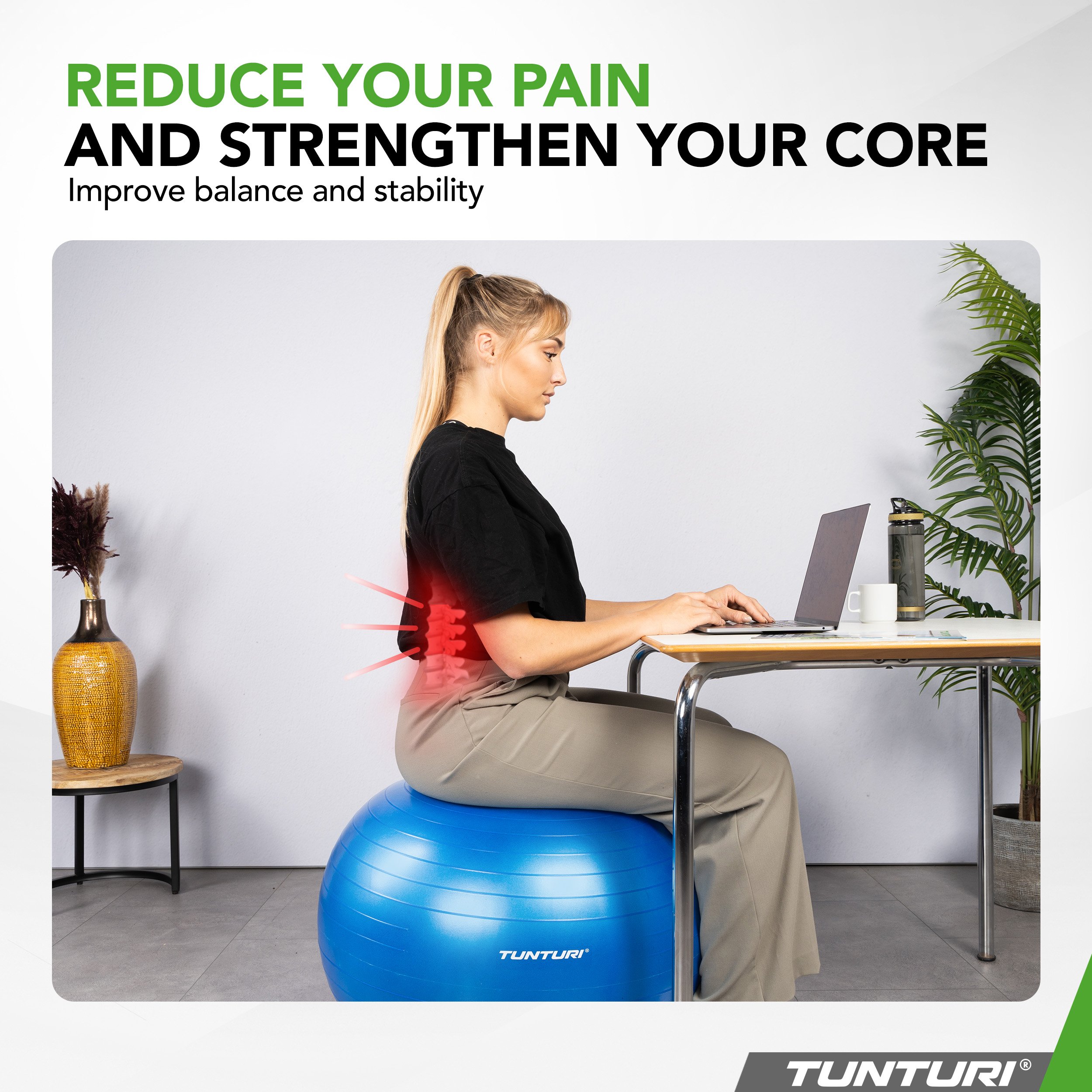 Zlepšete své tréninky, optimalizujte držení těla při sezení a objevte pohodlí cvičebního míče Tunturi. Vyberte si všestrannost, odolnost a styl v jednom.