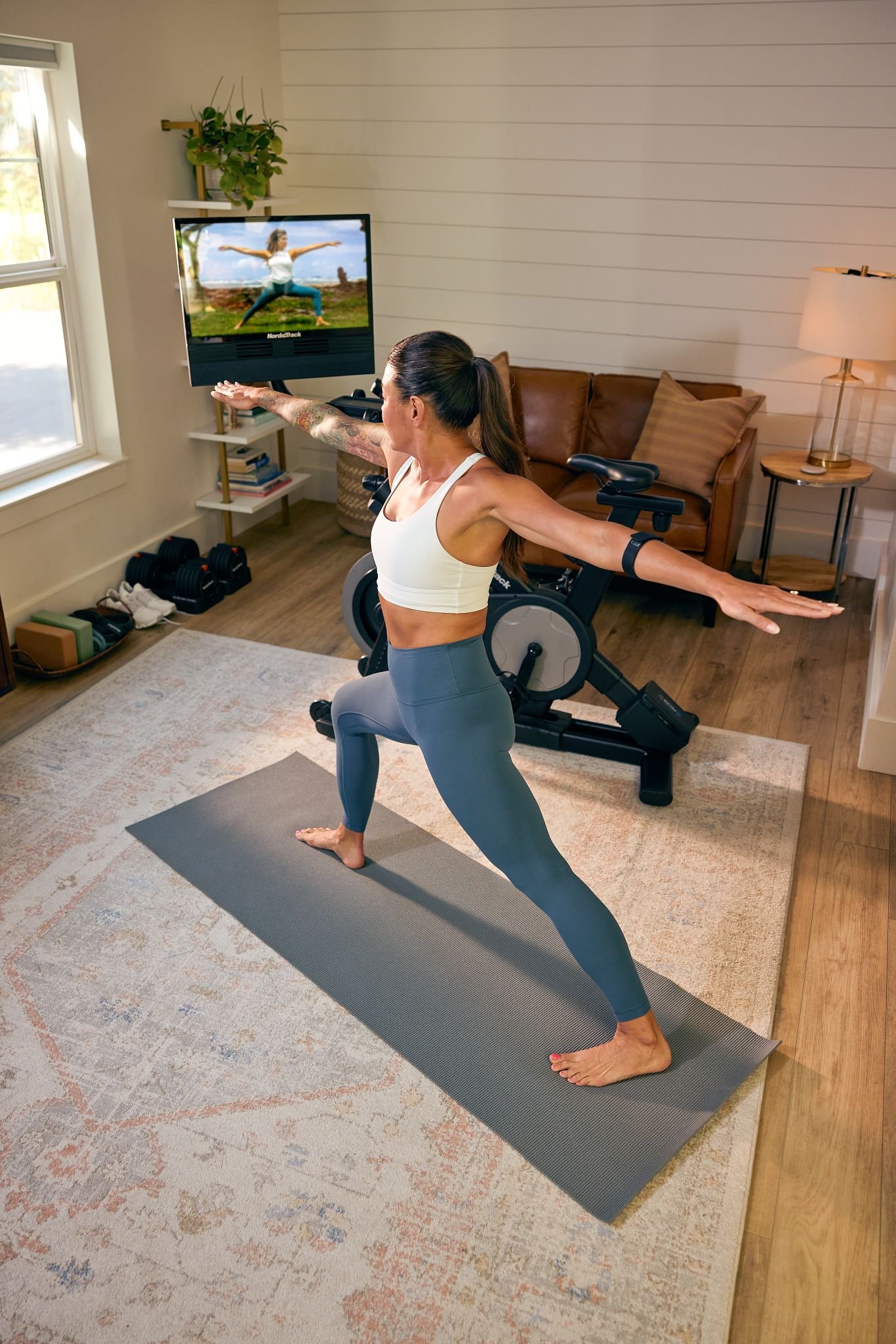 Displej: na přehledném 24“ (61 cm) HD dotykovém displeji, sledujte trenéry iFIT při cvičeních, jako je posilování nebo jóga