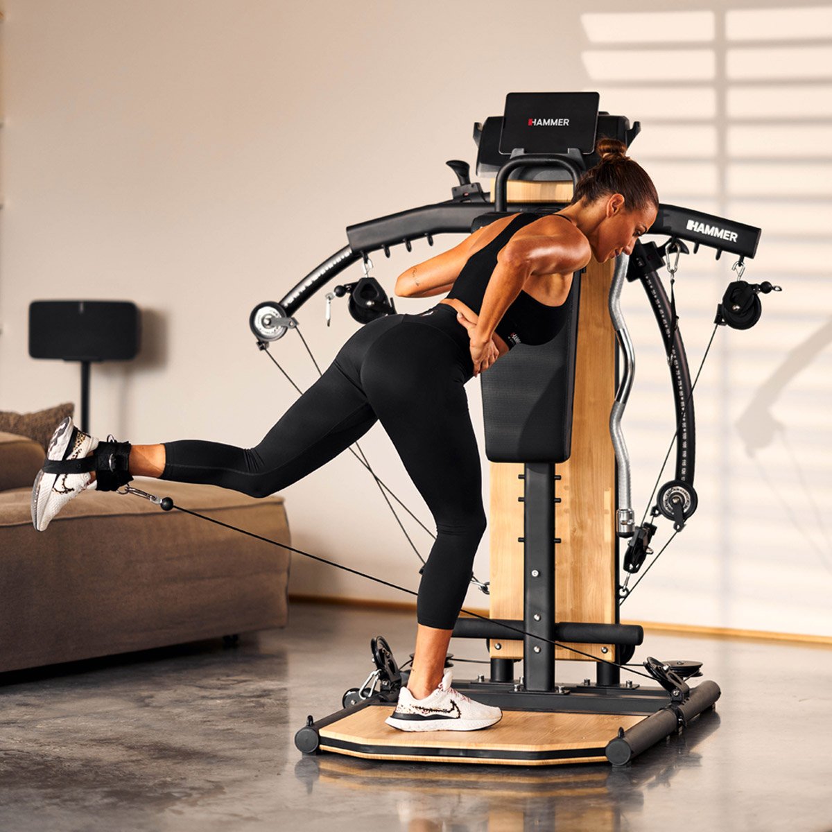 HAMMER BioForce MX NorsK je moderní a vysoce univerzální domácí posilovací stanice, která kombinuje kompaktní provedení, inovativní odporovou technologii a stylový design. Přináší více než 80 různých cviků zaměřených na nohy, záda, hrudník, ramena, paže i břišní svaly, takže umožňuje efektivní trénink celého těla bez potřeby těžkých závaží.