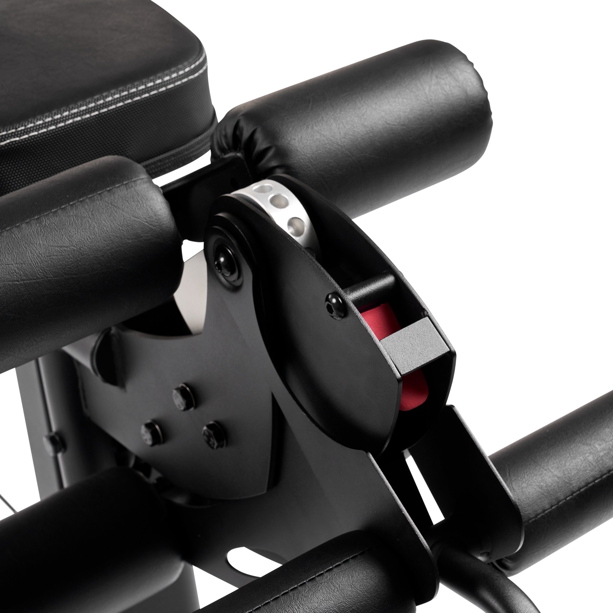Polstrované opěrky a sedák zajišťují komfort i při delších trénincích. Ergonomicky navržené úchopy podporují správné provedení cviků a pomáhají minimalizovat riziko přetížení.