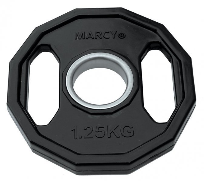 Marcy kotouč pogumovaný hranatý 2x 1,25 kg je speciální ocelové závaží vhodné pro všechny typy posilovacích činek s průměrem osy 50 mm. Povrch kotouče je opatřen speciální gumovou vrstvou se zvýšenou odolností proti opotřebení. Hranatý pogumovaný kotoučje dále opatřen ergonomicky tvarovanými otvory, díky kterým je možné s kotoučem snadněji manipulovat.