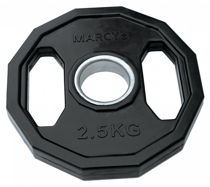 Marcy kotouč pogumovaný hranatý 2x 2,5 kg je speciální ocelové závaží vhodné pro všechny typy posilovacích činek s průměrem osy 50 mm. Povrch kotouče je opatřen speciální gumovou vrstvou se zvýšenou odolností proti opotřebení. Hranatý pogumovaný kotoučje dále opatřen ergonomicky tvarovanými otvory, díky kterým je možné s kotoučem snadněji manipulovat.