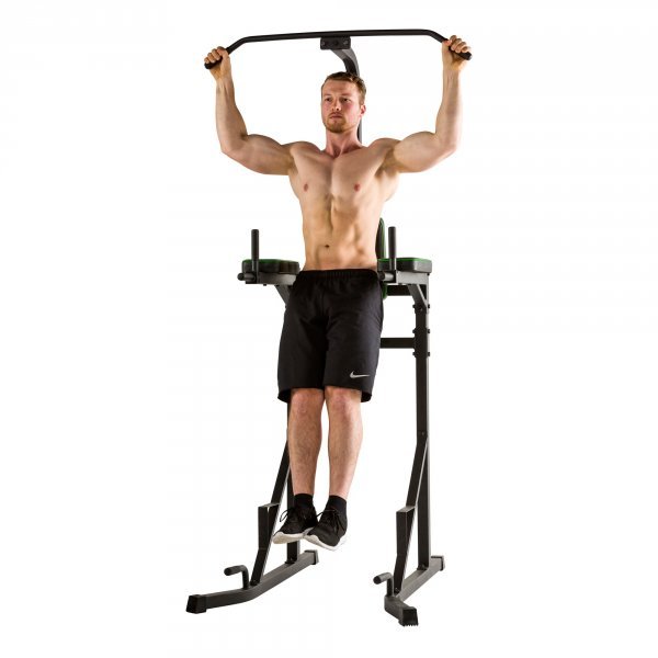 Cvičební nástroj pro trénink horní části těla a břišních svalů, kdy jako zátěž používáte pouze vlastní váhu. Ideální stroj pro domácí posilovnu, svými kompaktními rozměry nezabere moc místa. Robustní horní hrazda procvičí různé svalové skupiny horní poloviny těla dle zvolené vzdálenosti úchopu. Bradla jsou opatřena polstrovanými opěrkami rukou i zad. Spodní madla poslouží pro provádění kliků.